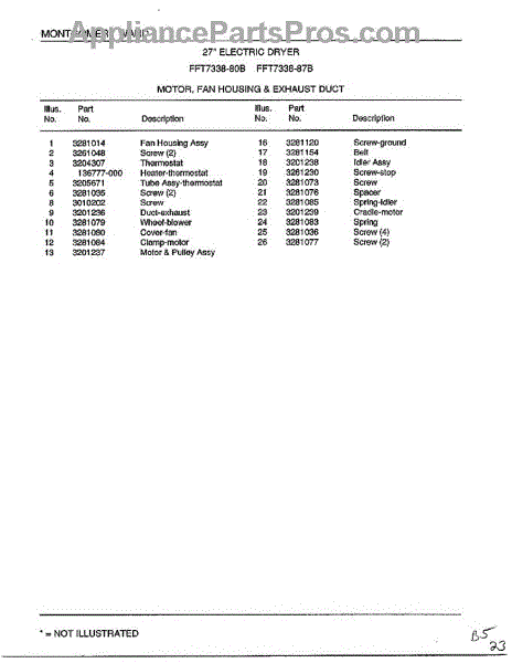 Parts for Frigidaire 7338B: Motor, Fan Housing And Exhaust Duct Page 2 Parts