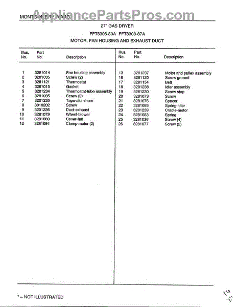Parts for Frigidaire 8308A: Motor / Fan Housing And Exhaust Duct Page 2 Parts
