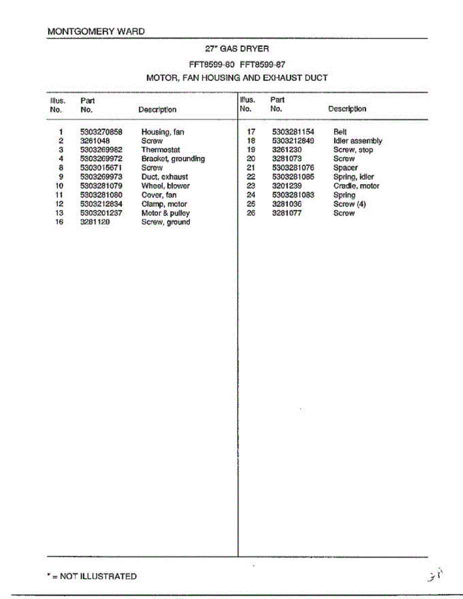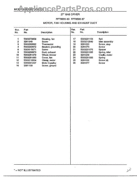 Parts for Frigidaire 8599-87: Motor / Fan Housing And Exhaust Duct Page 2 Parts
