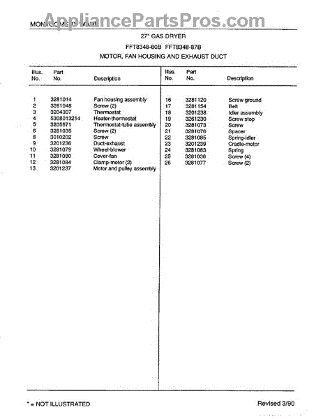 Parts for Frigidaire 8348B: Motor, Fan Housing And Exhaust Duct Page 2 Parts