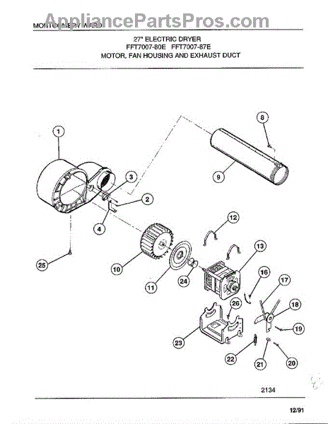 Parts for Frigidaire 7007-87E: Motor / Fan Housing And Exhaust Duct Parts