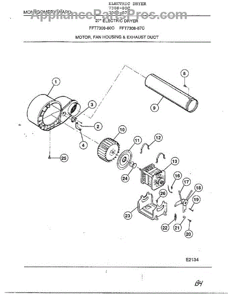 Mounting screw for dryer assembly. Secures internal components and panels. Replace if stripped, missing, or damaged during maintenance or repair work.