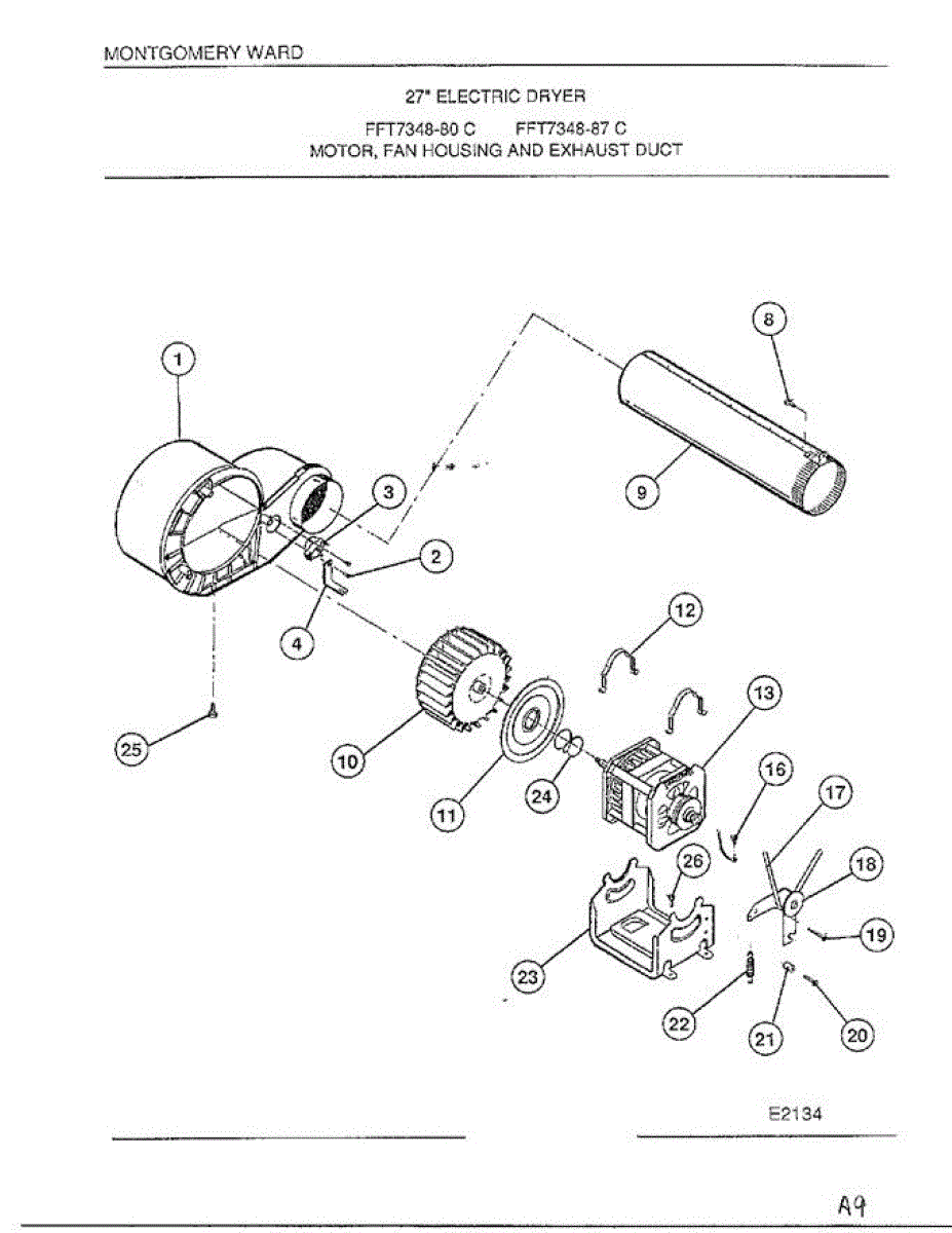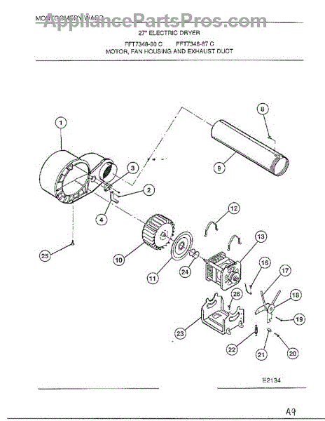Suspension spring for dryers. Supports the drum and absorbs vibration during operation. Replace if stretched, broken, or causing excessive drum movement.