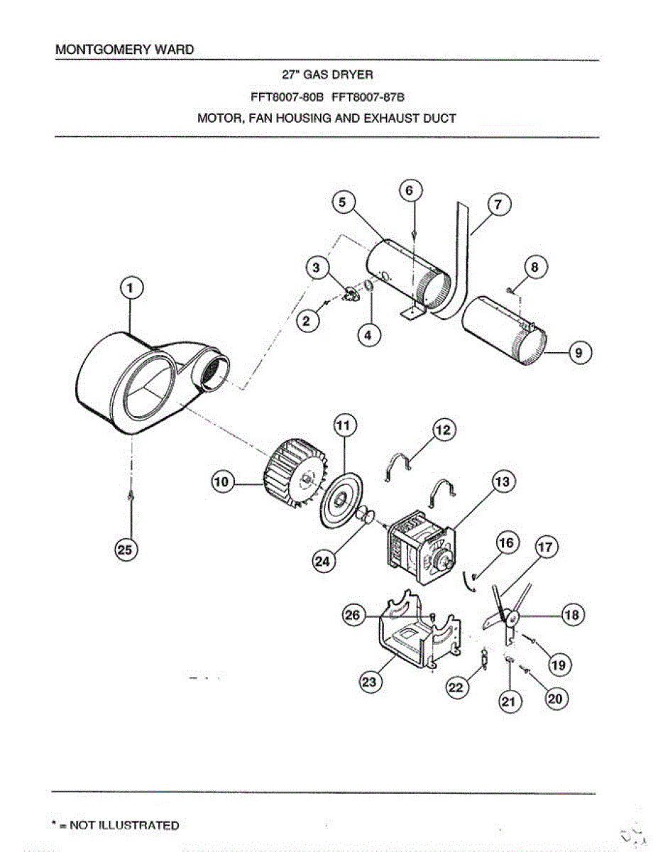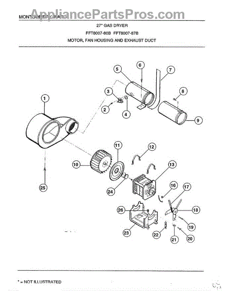 Parts for Frigidaire 8007B: Motor / Fan Housing And Exhaust Duct Parts