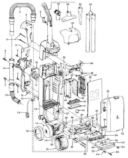 Parts for Hoover U5453-916: Motor, Handle, Hose, Outerbag Parts
