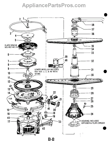Parts for Whirlpool 8561L30: 19 - Motor, Heater And Spray Arm Parts