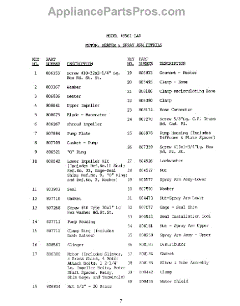Parts for Roper 8561L40: 08 - Motor, Heater And Spray Arm Parts