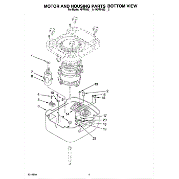 Parts for Kitchenaid KPFP850PM0: 03 - Motor And Housing Parts Bottom View Parts
