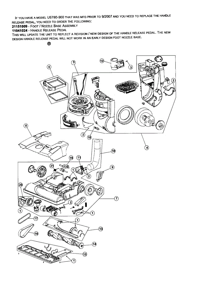 Parts for Hoover U5780-900: Motor & Housing / Nozzle Base Parts