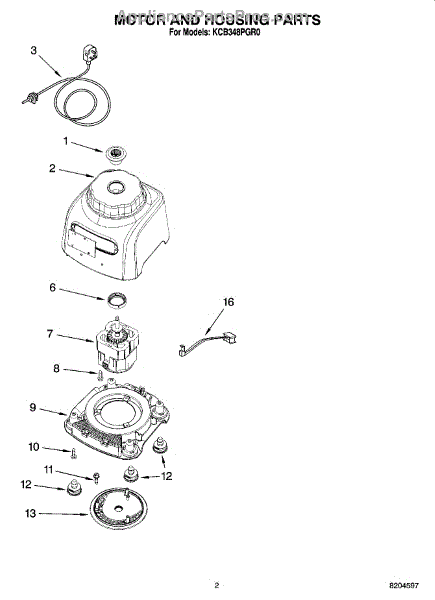 Parts for Kitchenaid KCB348PGR0: 02 - Motor And Housing Parts