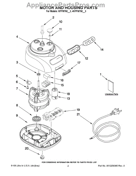 Parts for Kitchenaid KFPW760QOB3: 01 - Motor And Housing Parts