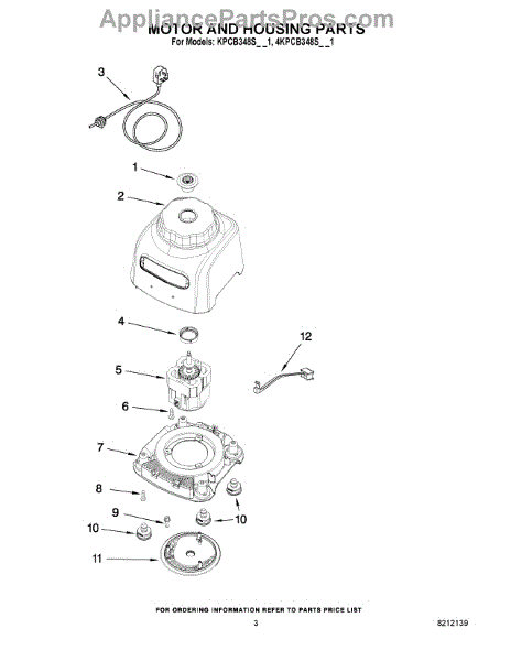Parts for Kitchenaid KPCB348SPM1: 02 - Motor And Housing Parts