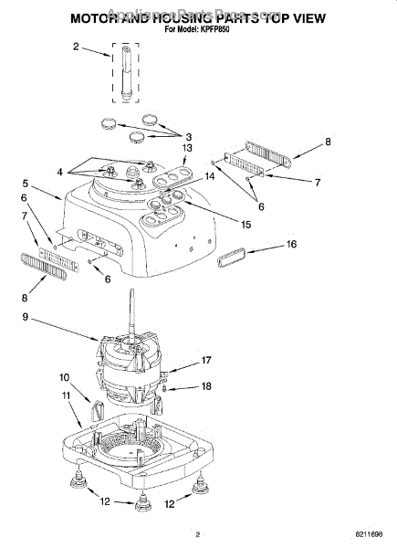 Parts for Kitchenaid KPFP850: 02 - Motor And Housing Parts Top View Parts