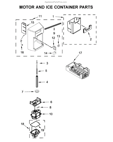 A bad ice container assembly can occur due to wear and tear over time or damage to the container or its components. If you notice symptoms such as the ice not dispensing properly, leaks from the dispenser area, or a broken or cracked ice container, it may be time to replace this part.