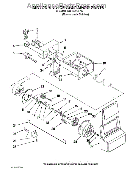 Parts for Whirlpool WSF26D2EXY02: 05 - Motor And Ice Container Parts