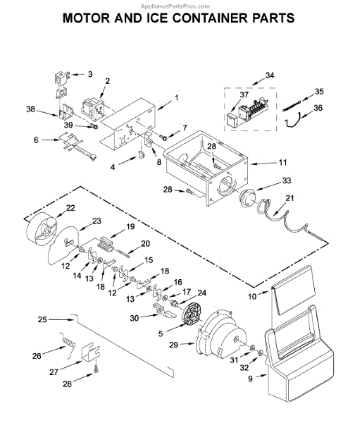 Parts for Amana ASI2175GRW04: Motor And Ice Container Parts