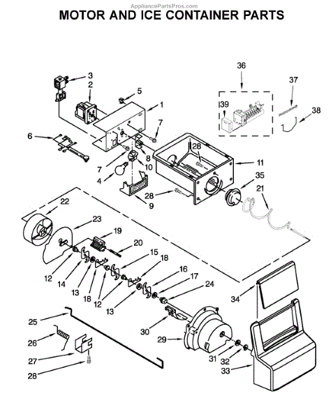 Parts for Amana ASI2575FRB00: Motor And Ice Container Parts