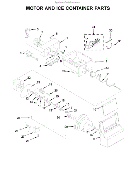 The Whirlpool ice dispenser motor is an OEM replacement part responsible for driving the mechanism that dispenses ice from the ice maker in a refrigerator. This motor is typically located within the ice container assembly, where it powers the auger or paddle responsible for pushing ice cubes through the dispenser chute and into a container or glass. When a user activates the ice dispenser on the refrigerator's exterior, the motor engages, causing the auger or paddle to rotate, delivering ice efficiently. This Whirlpool part can also be used on Maytag, KitchenAid, Jenn-Air, Amana, Magic Chef, Admiral, Norge, Roper, and Kenmore/Sears brand appliances. This part fixes the following symptoms