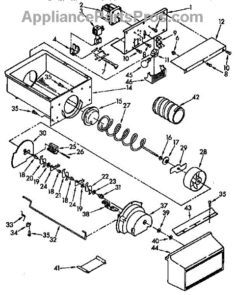 Parts for Kenmore 106.9545780 (1069545780, 106 9545780): Motor And Ice Container Parts