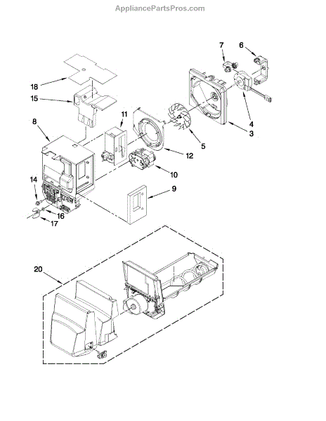 The Ice Dispenser Yoke is an OEM replacement part for Whirlpool refrigerators. It houses the ice dispensing mechanism and guides ice from the ice bucket into the chute upon user activation. Causes of a bad ice dispenser yoke include worn gears or parts that lead to failure of the dispensing mechanism. Broken pieces or cracks in the yoke itself can also prevent proper ice delivery. Symptoms of a bad ice dispenser yoke include: