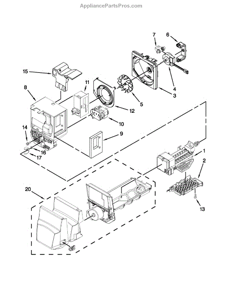 Parts for Kenmore 596.79249016 (59679249016, 596 79249016): Motor And Ice Container Parts
