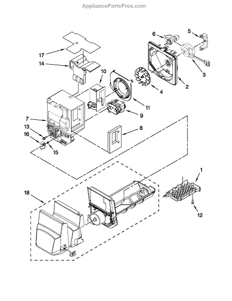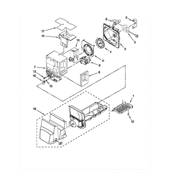 Parts for Kenmore 596.79542014 (59679542014, 596 79542014): Motor And Ice Container Parts