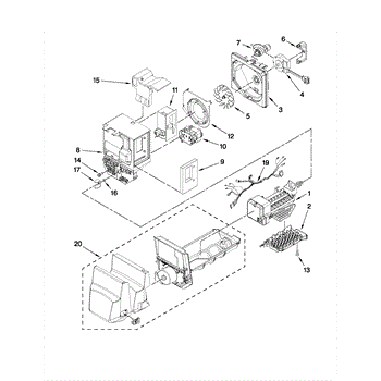This ice container assembly stores ice in the freezer and interfaces with the dispenser to deliver cubed or crushed ice. Replacing a cracked or worn bin restores smooth, consistent ice dispensing performance.
