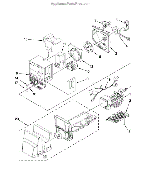 NOTE: 8 cube icemaker Includes two wire harnesses and shut off arm.
