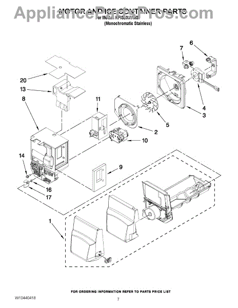 Parts for Kitchenaid KFIS20XVMS7: 04 - Motor And Ice Container Parts
