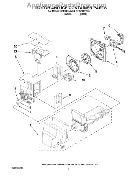 Parts for Kitchenaid KFIS20XVWH3: 04 - Motor And Ice Container Parts