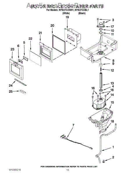 Parts for Kitchenaid KFIS27CXBL1: 07 - Motor And Ice Container Parts