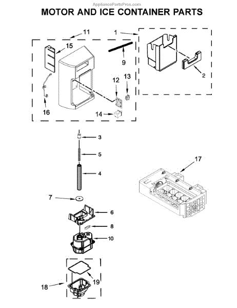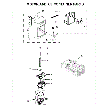 Parts for Kitchenaid KRSC703HPS00: Motor And Ice Container Parts