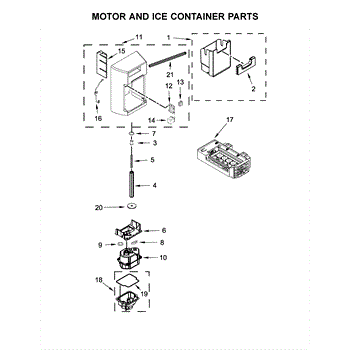Parts for Kitchenaid KRSF505EWH01: Motor And Ice Container Parts