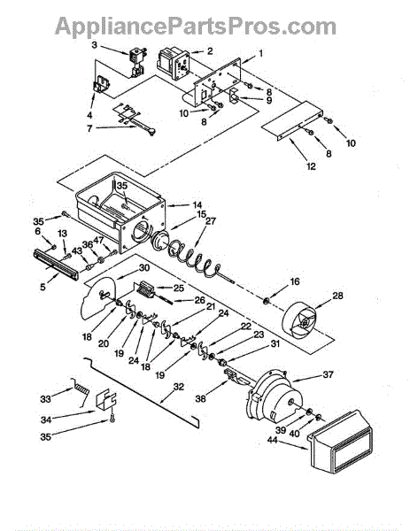 This small crusher housing secures the ice-crushing components inside the refrigerator dispenser, helping contain crushed ice and guide it toward the dispenser chute. Replaces a cracked, warped, or damaged housing to restore proper ice flow. What it does: