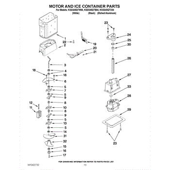 Parts for Kitchenaid KSSS48QTW04: 09 - Motor And Ice Container Parts