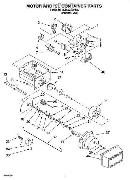 Parts for Whirlpool 3KES0GTQNL00: 04 - Motor And Ice Container Parts