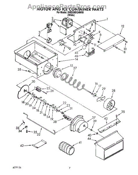 Parts for Whirlpool 3VED29DQAW00: 05 - Motor And Ice Container Parts