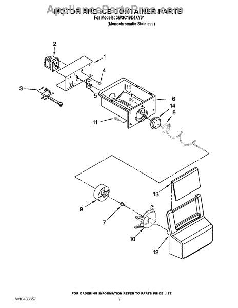 Parts for Whirlpool 3WSC19D4XY01: 05 - Motor And Ice Container Parts