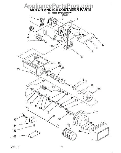 Parts for Whirlpool 3XARG499WP00: 05 - Motor And Ice Container Parts