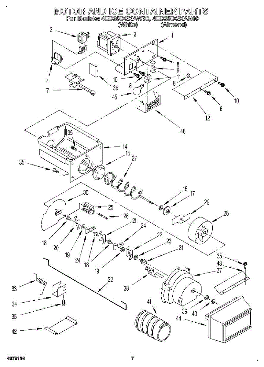 Parts for Whirlpool 4ED25DQXAN00: 05 - Motor And Ice Container Parts