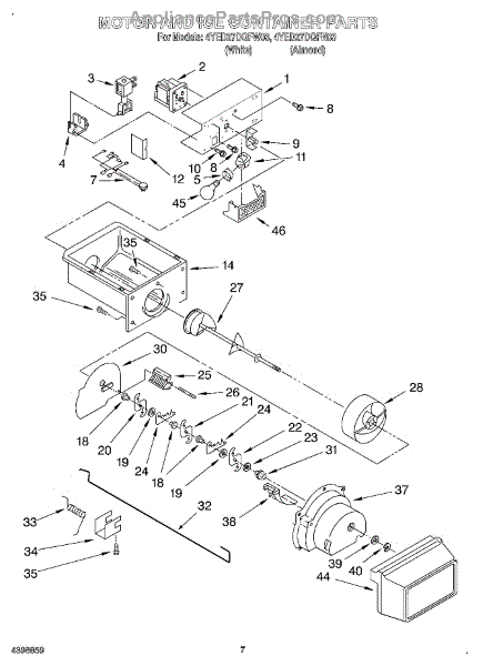 Parts for Whirlpool 4YED27DQFN03: 05 - Motor And Ice Container Parts