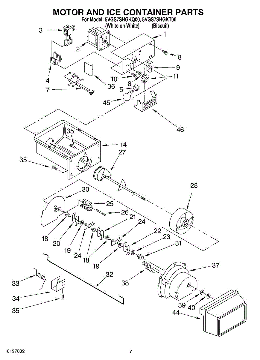 Parts for Whirlpool 5VGS7SHGKQ00: 05 - Motor And Ice Container Parts