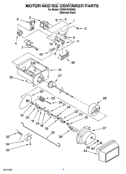 Parts for Whirlpool 7ED5FHEXRS00: 05 - Motor And Ice Container Parts