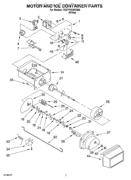Parts for Whirlpool 7ED7FHGXKQ00: 05 - Motor And Ice Container Parts