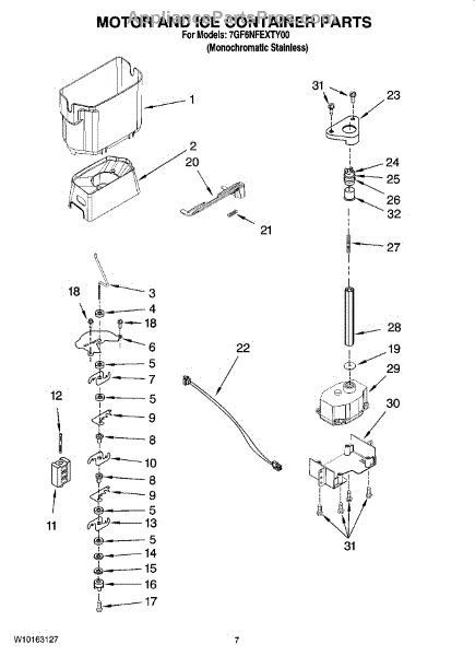 Parts for Whirlpool 7GF6NFEXTY00: 05 - Motor And Ice Container Parts