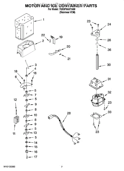 Parts for Whirlpool 7GS5FHAXTA00: 05 - Motor And Ice Container Parts
