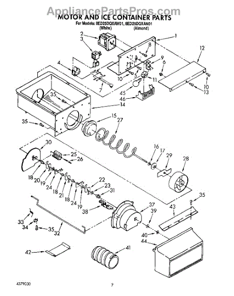 Parts for Whirlpool 8ED25DQXAN01: 05 - Motor & Ice Container Parts