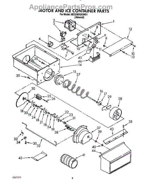 Parts for Whirlpool 8ED25DQXXN01: 06 - Motor And Ice Container Parts