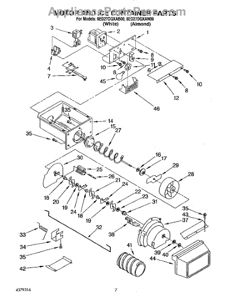 Parts for Whirlpool 8ED27DQXAN00: 05 - Motor And Ice Container Parts