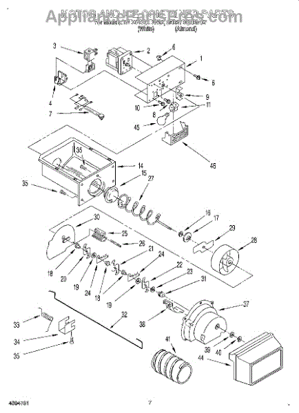 Parts for Whirlpool 8ED27DQXDN02: 05 - Motor And Ice Container Parts